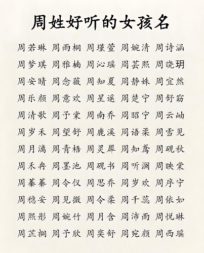 周姓有着深厚的历史文化底蕴,将家族元素融入名字,既是对先祖的致敬,也让名字更有深度和传承意义。